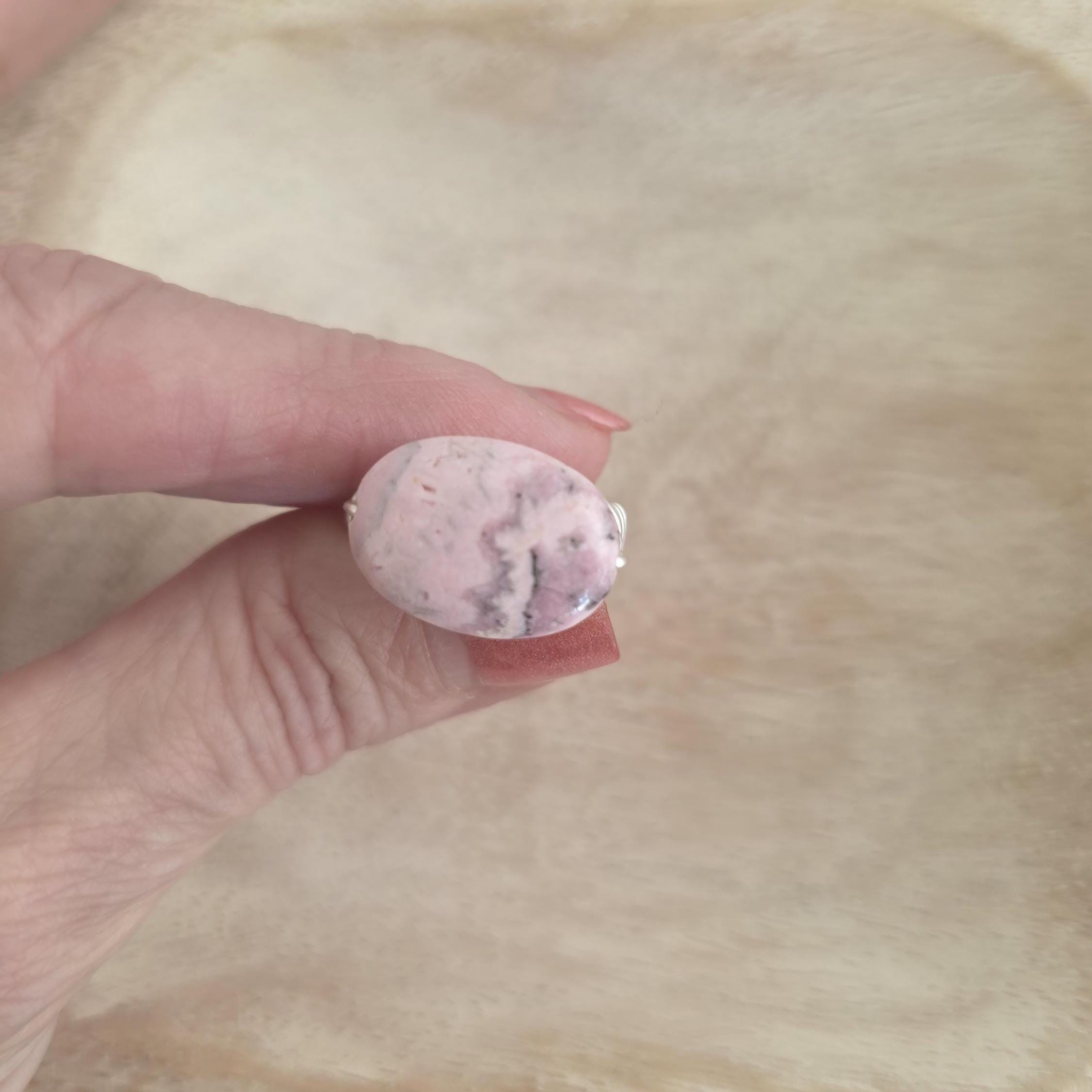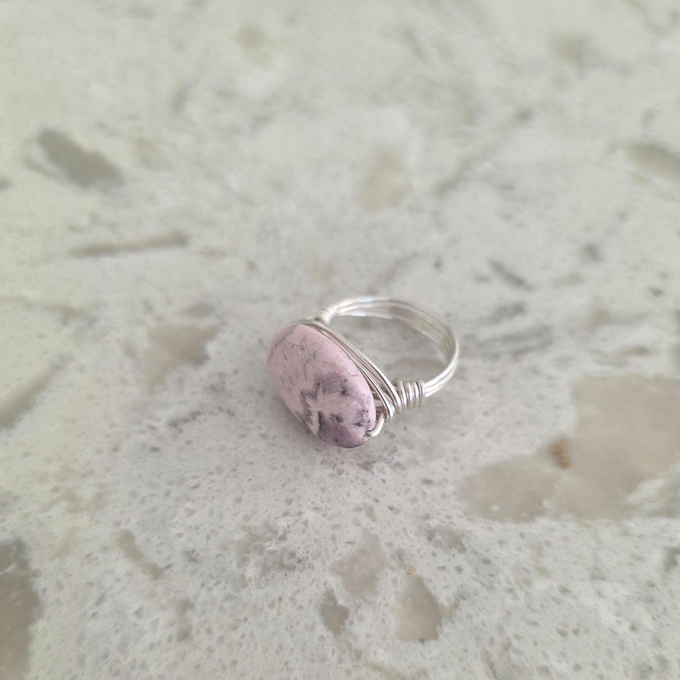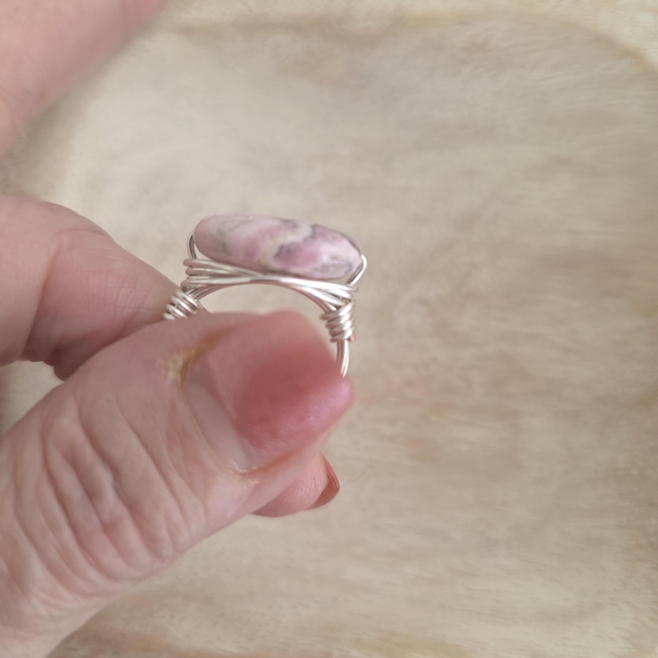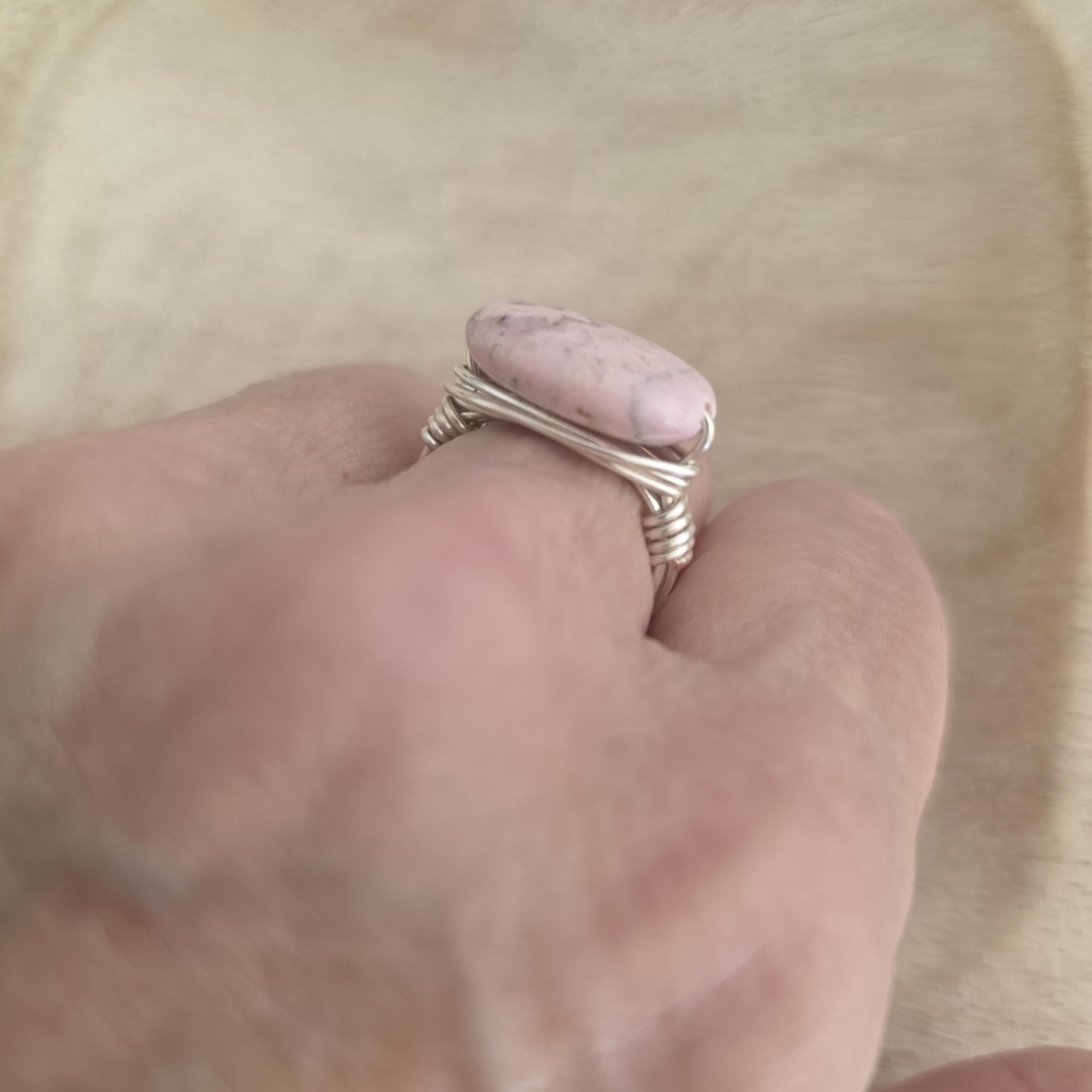 Wire wrapped pink rhodochrosite ring, statement jewelry