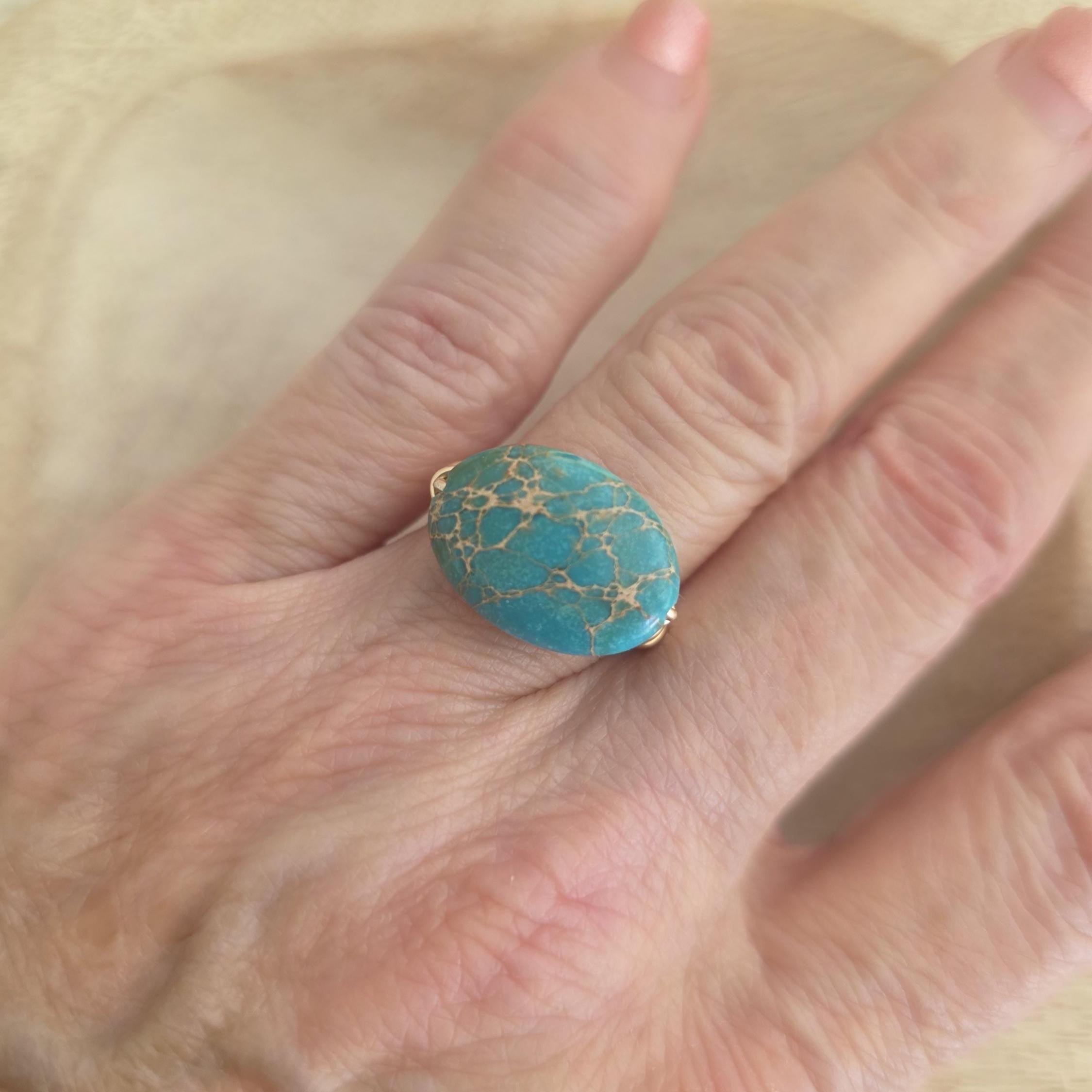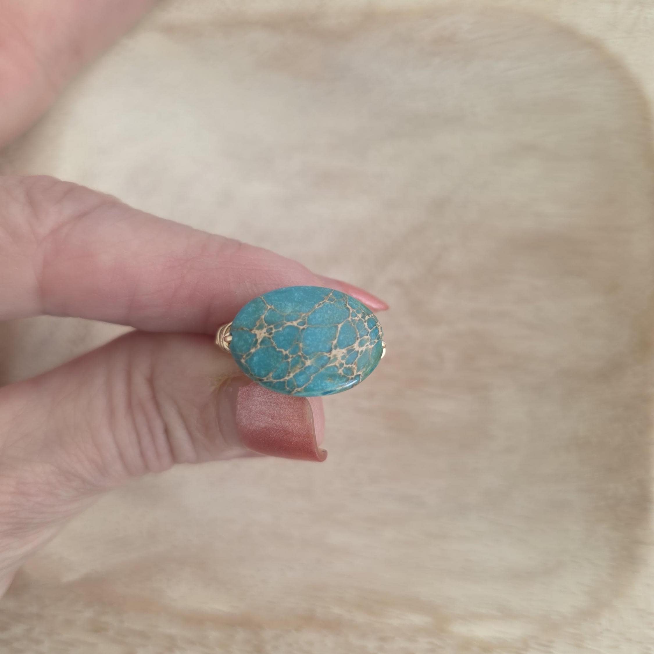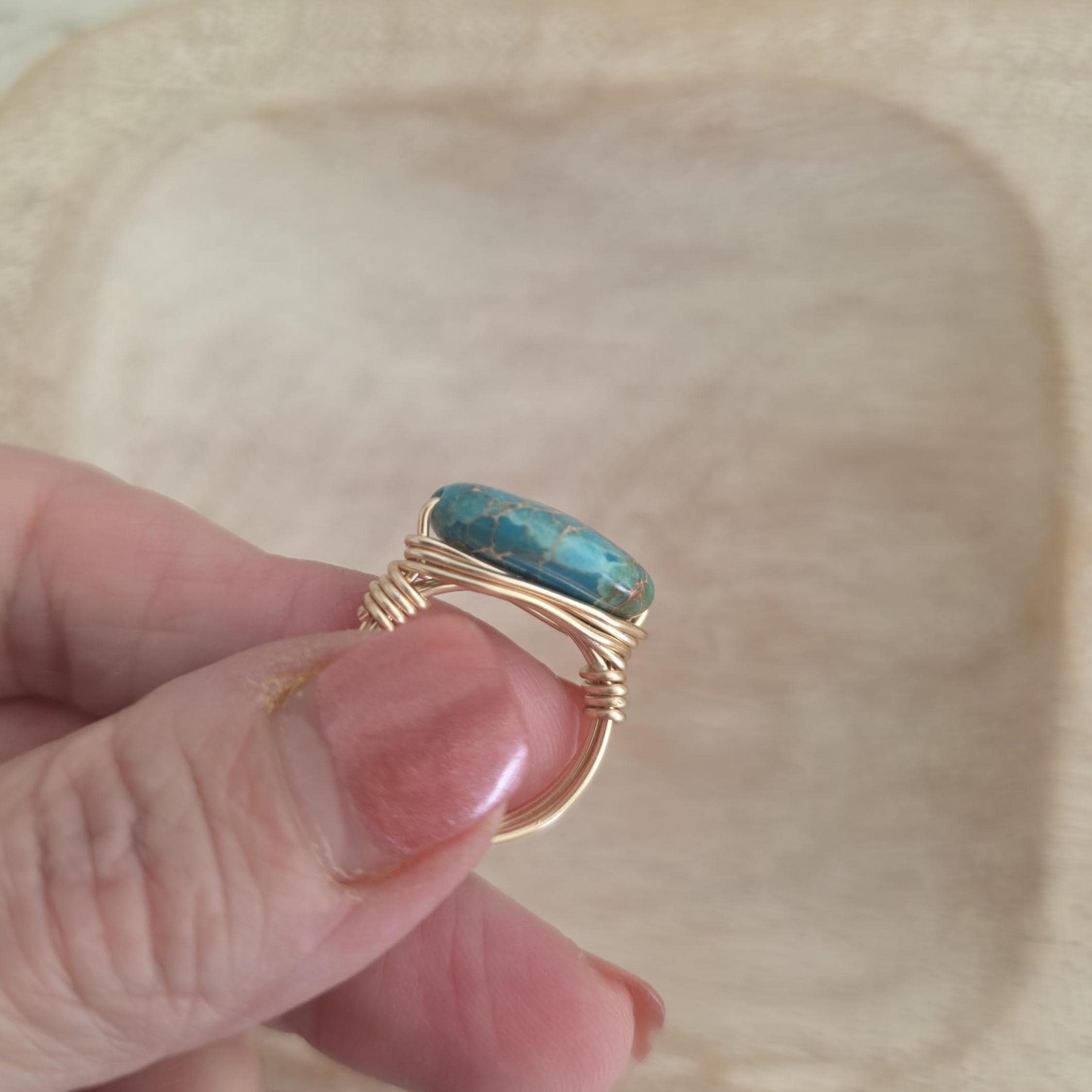Please note each ring is wire wrapped by me so no 2 rings will be alike. The wire is tarnish resistant so it will stand up to everyday wear but please remember to remove all jewelry before swimming, showering, or working out.