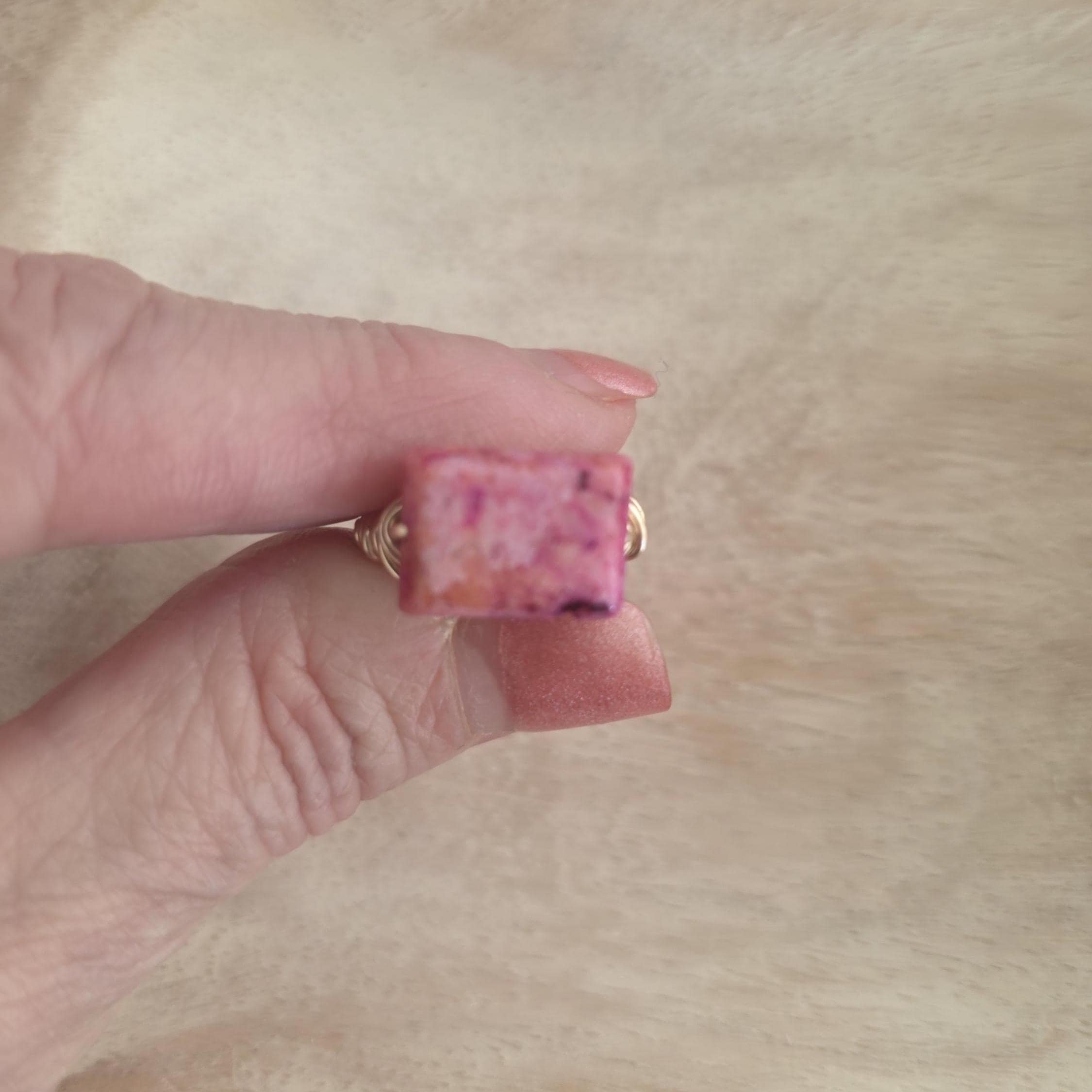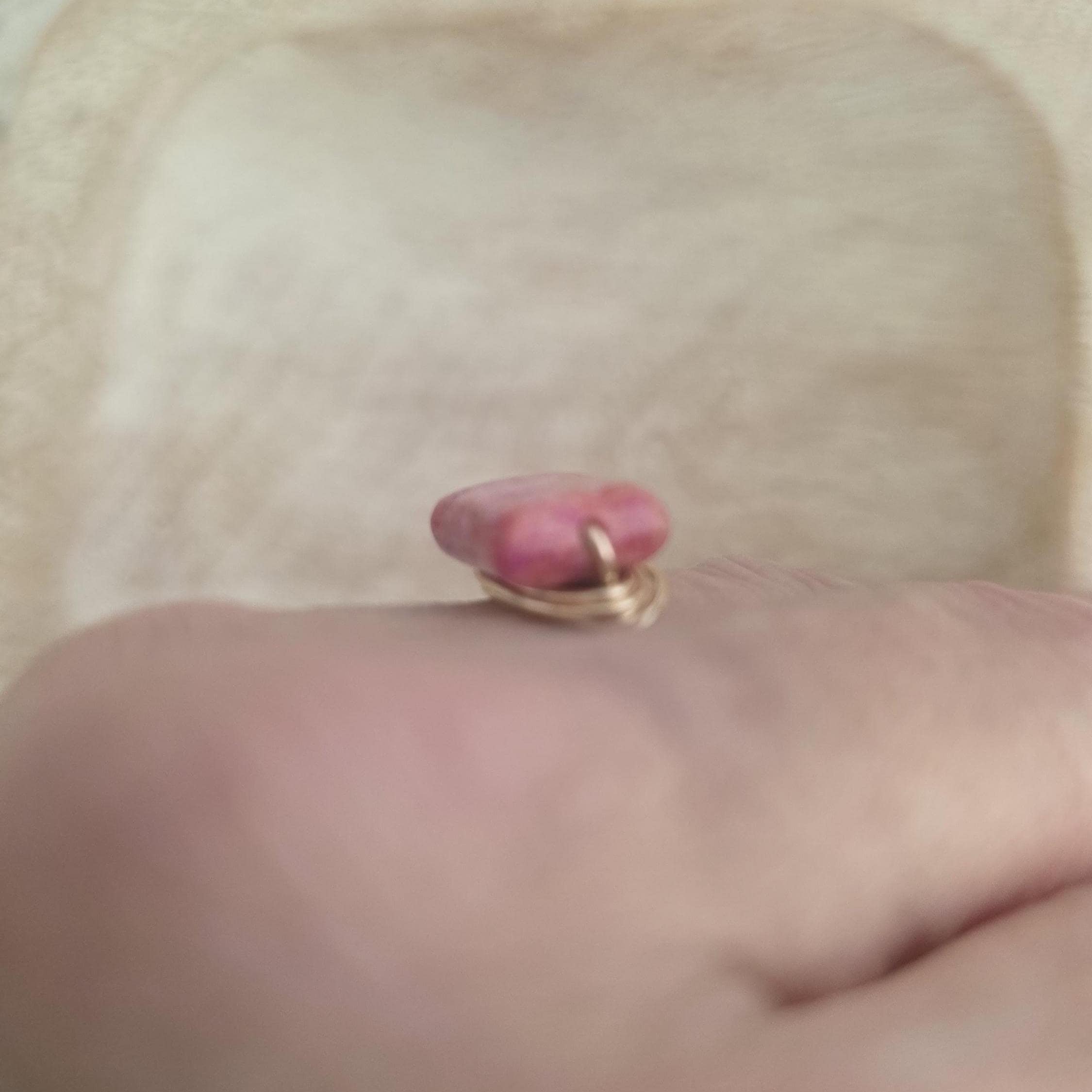 A beautiful pink rectangle agate bead is wire wrapped in your choice of either silver or gold wire.