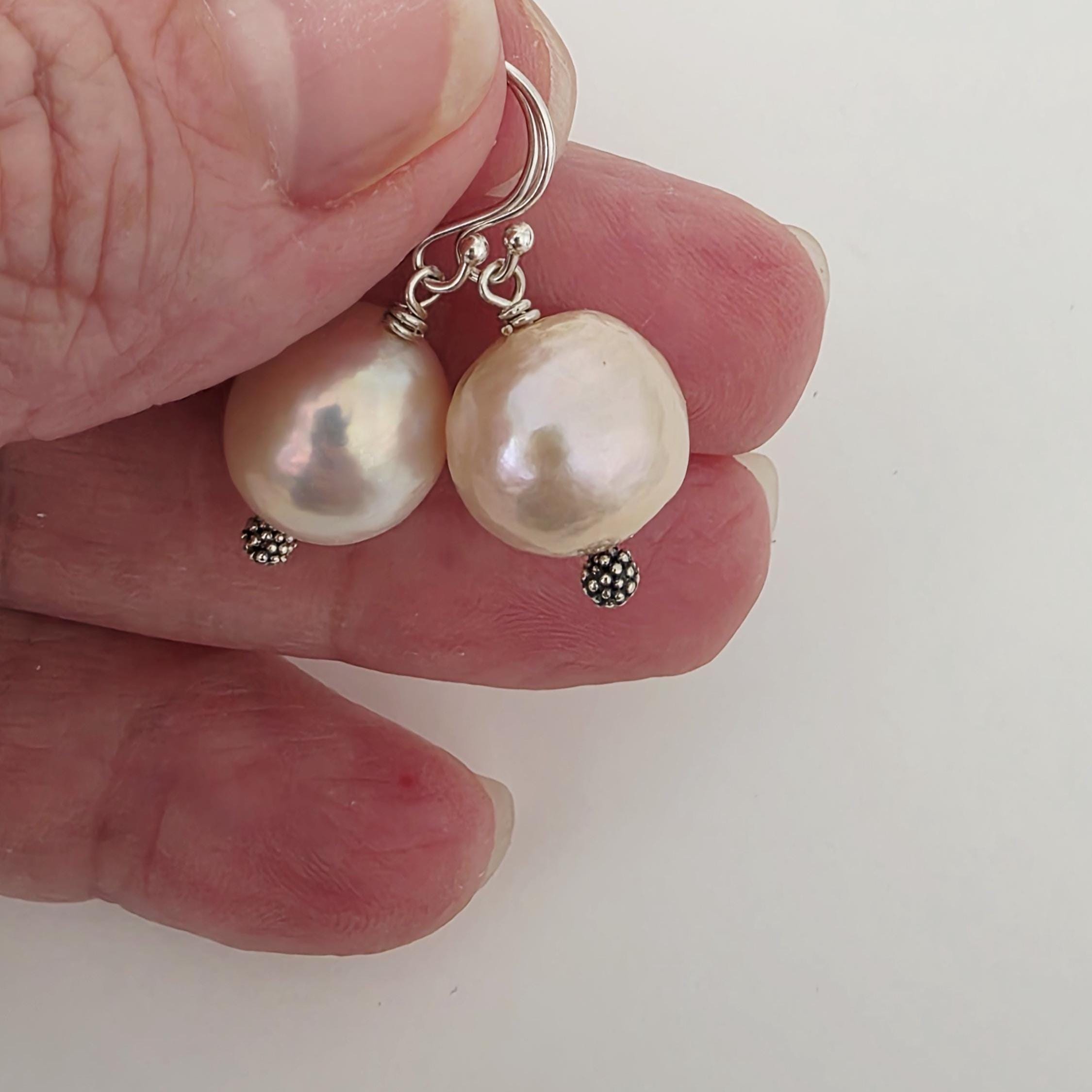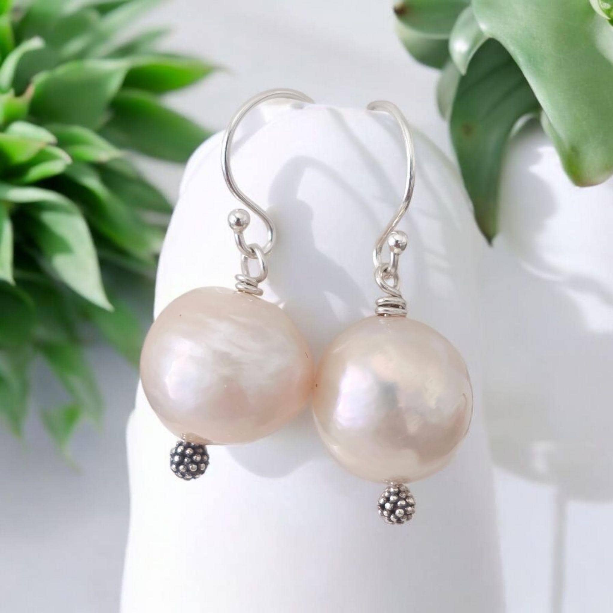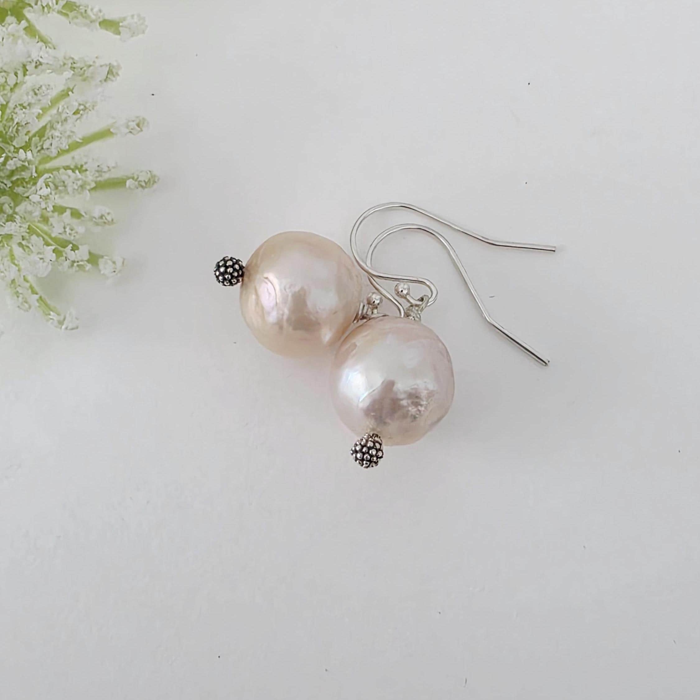 Kasumi pearl earrings hang from sterling silver earwires. A lovely pair of earrings that can be worn everyday and will be your everday essential.