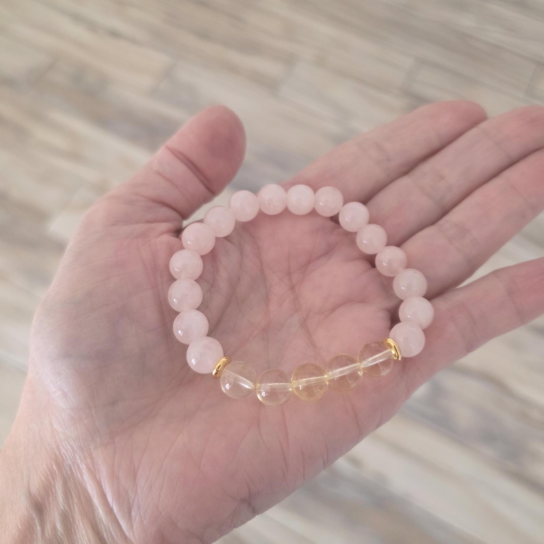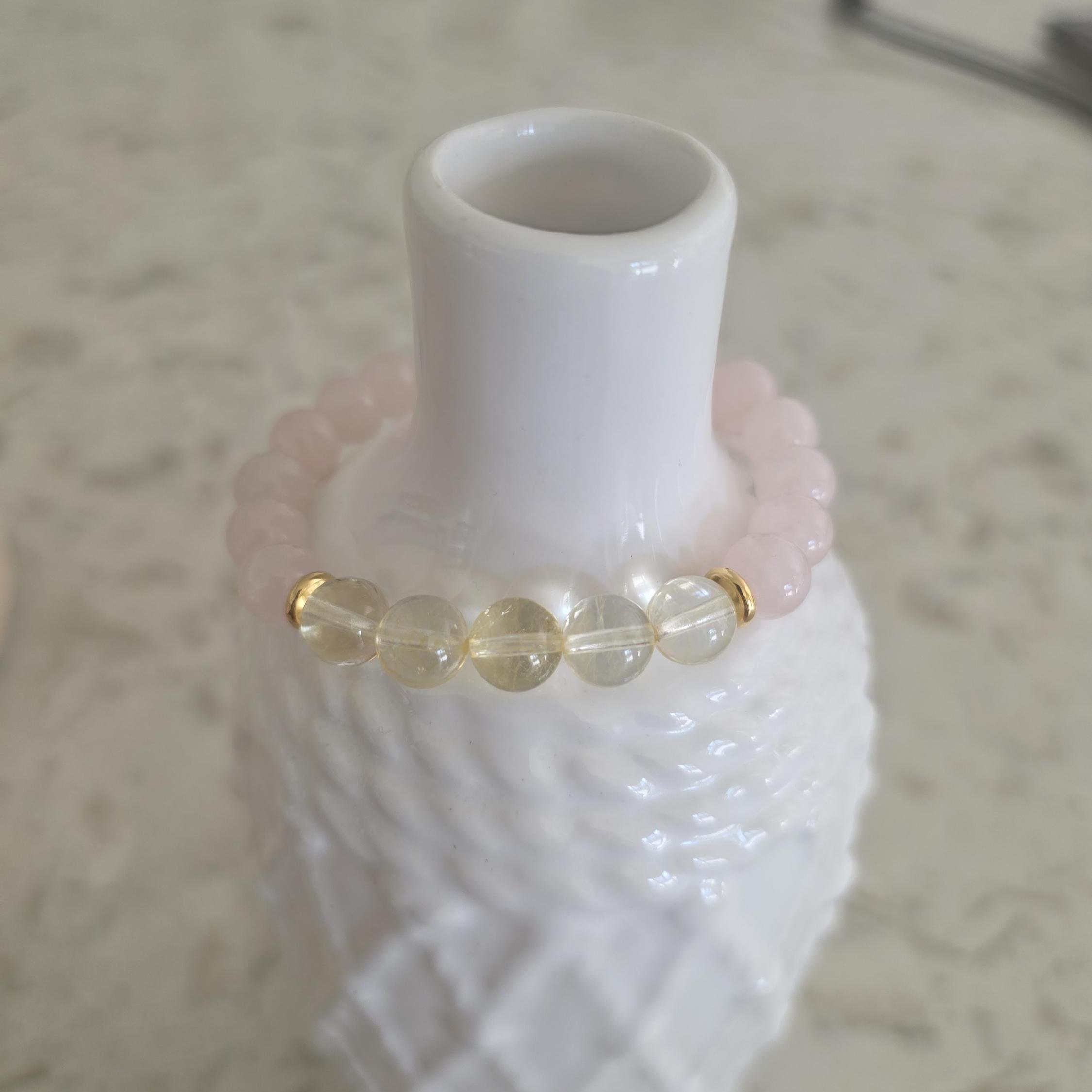 Rose quartz and citrine Beaded Bracelet, Gold Vermeil Accents, Boho Stackable