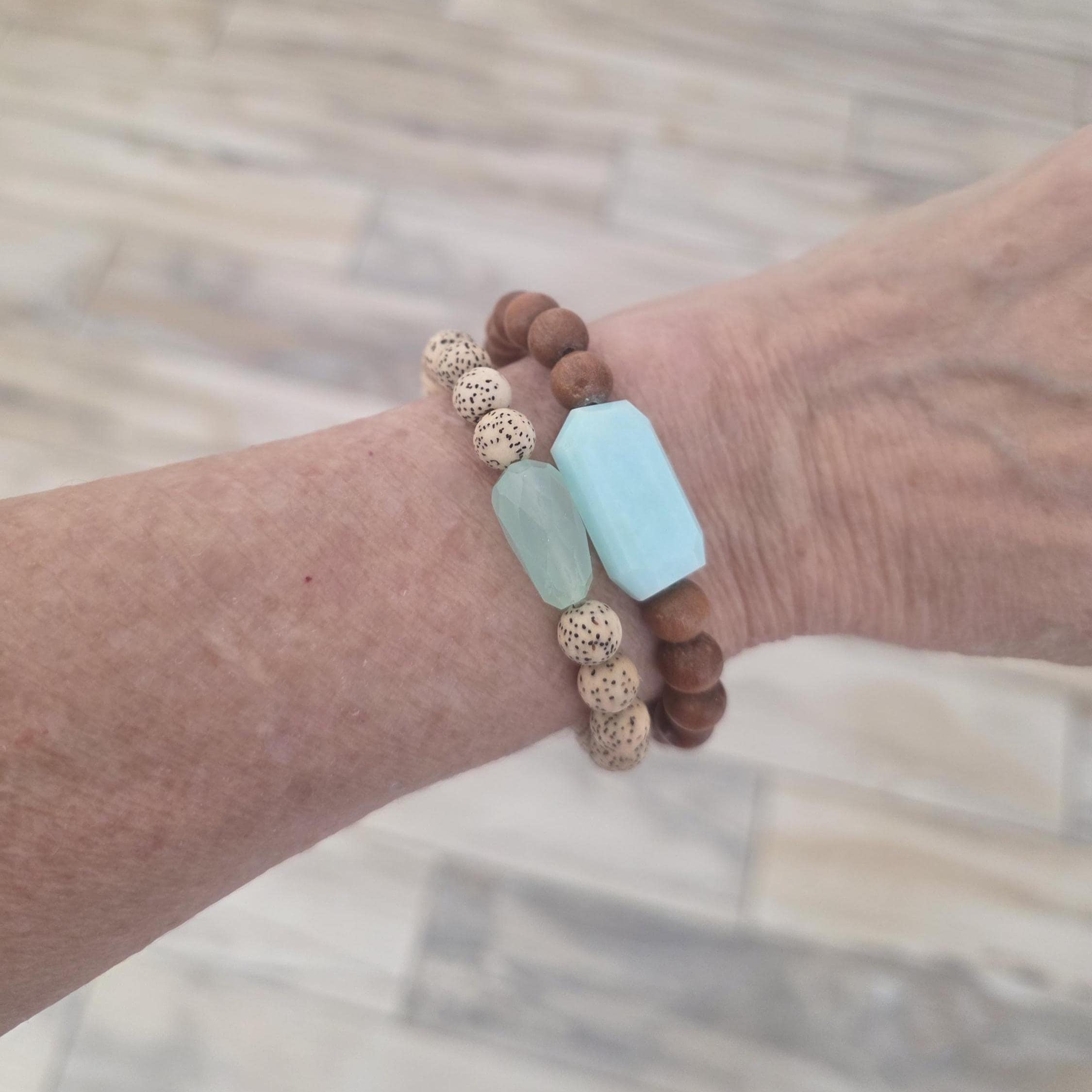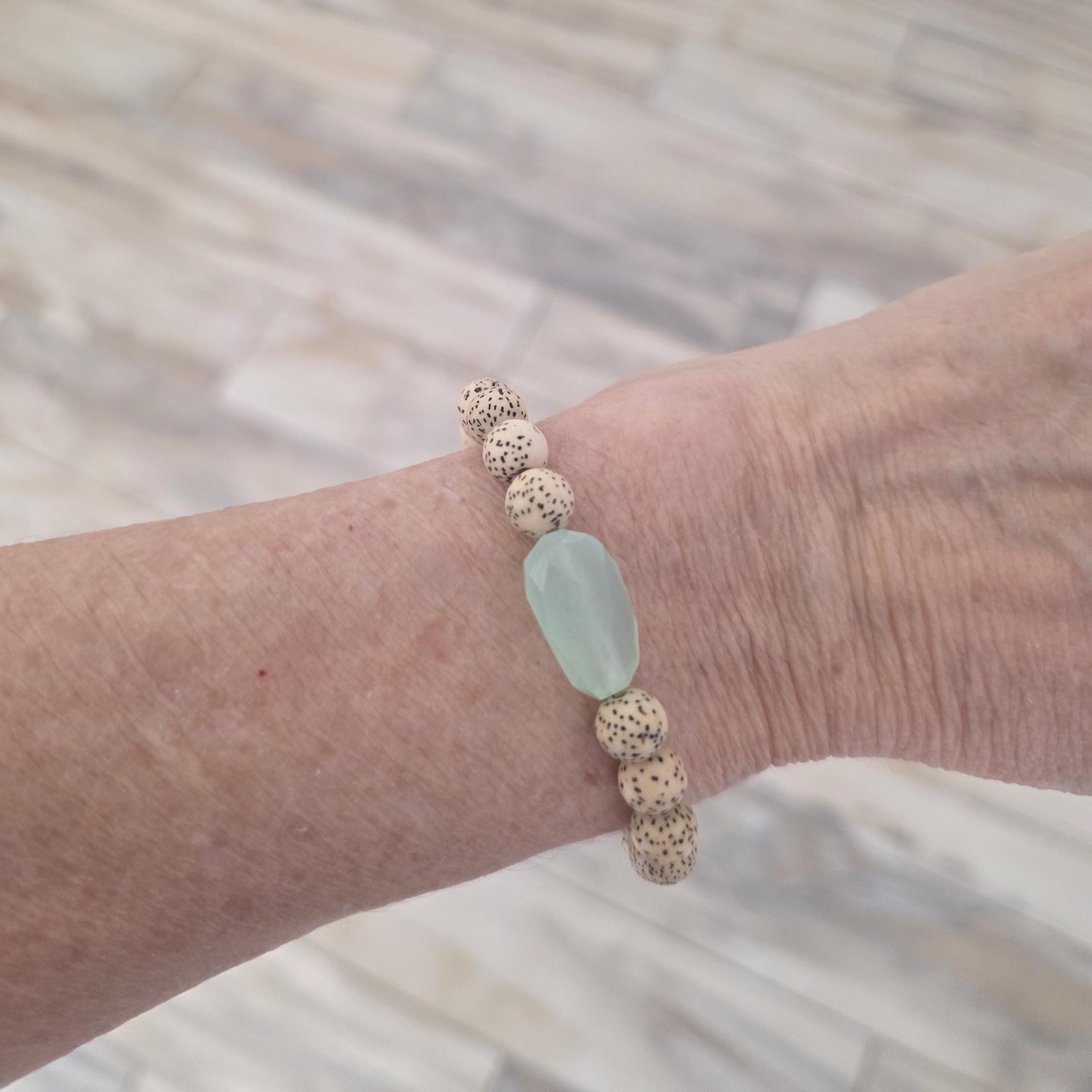 Lotus seed and blue chalcedony bracelet, summer jewelry, everyday jewelry