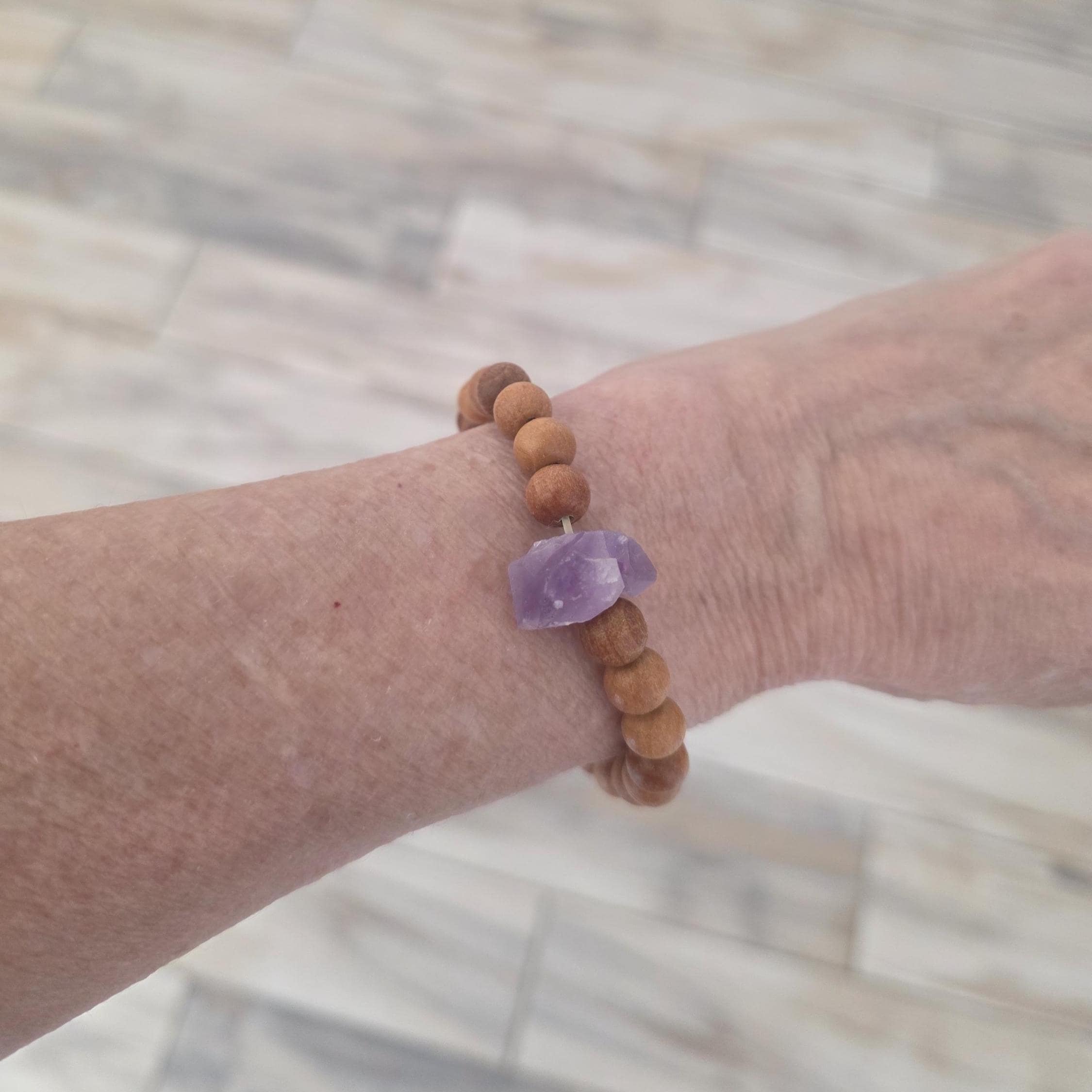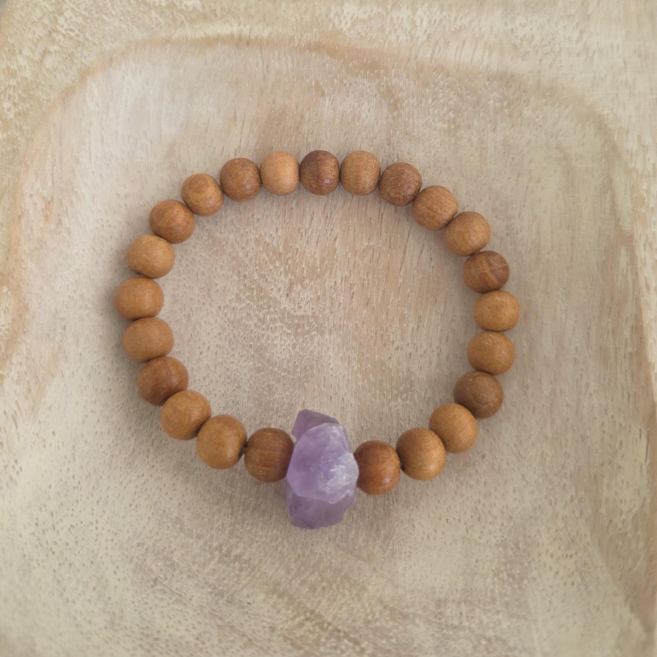 This bracelet is made with scented sandalwood and an amethyst nugget. Wear this bracelet alone or stack with others from my shop.