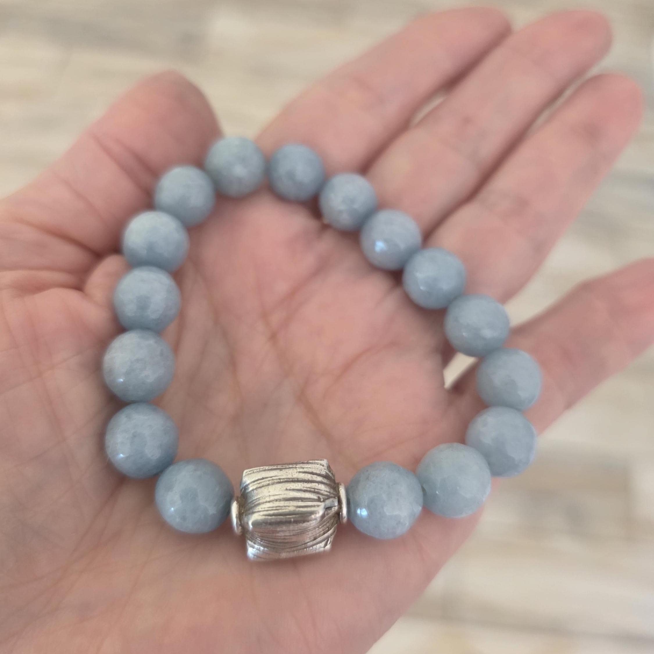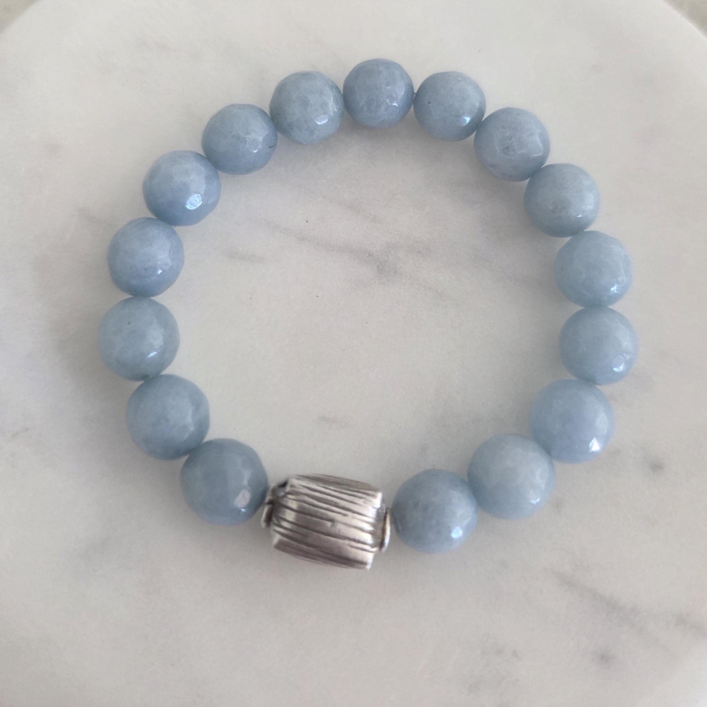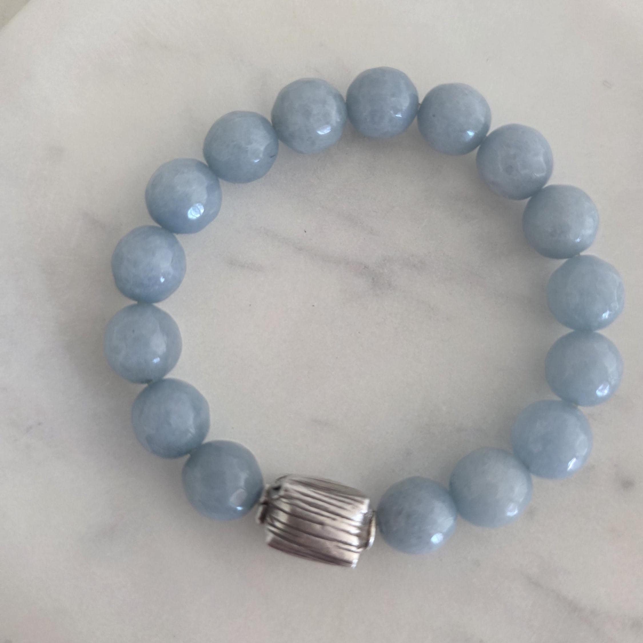 Light blue jade bracelet sterling silver hill tribe bead, beach chic, boho style