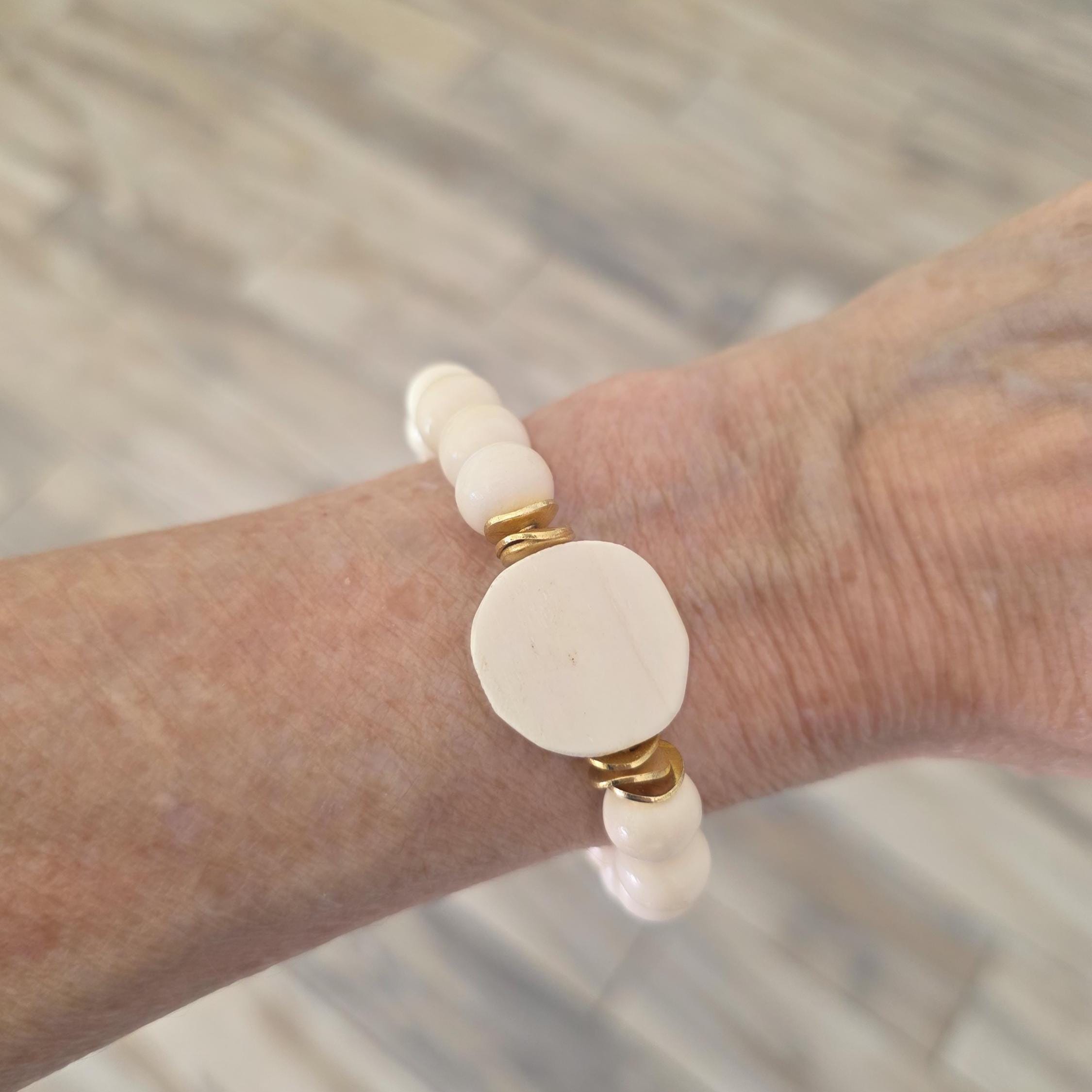 Bone bead bracelet with gold plated spacers, summer bracelet