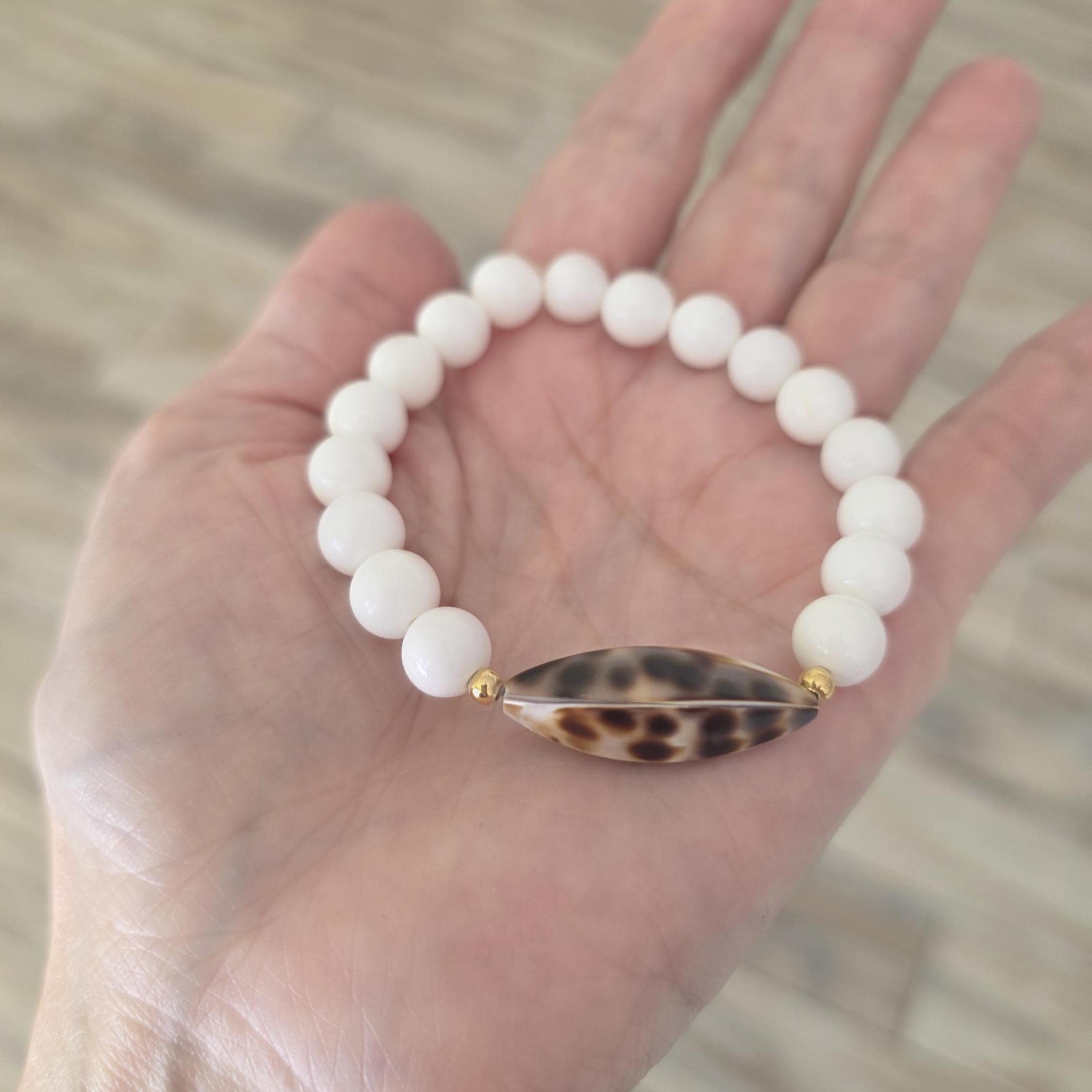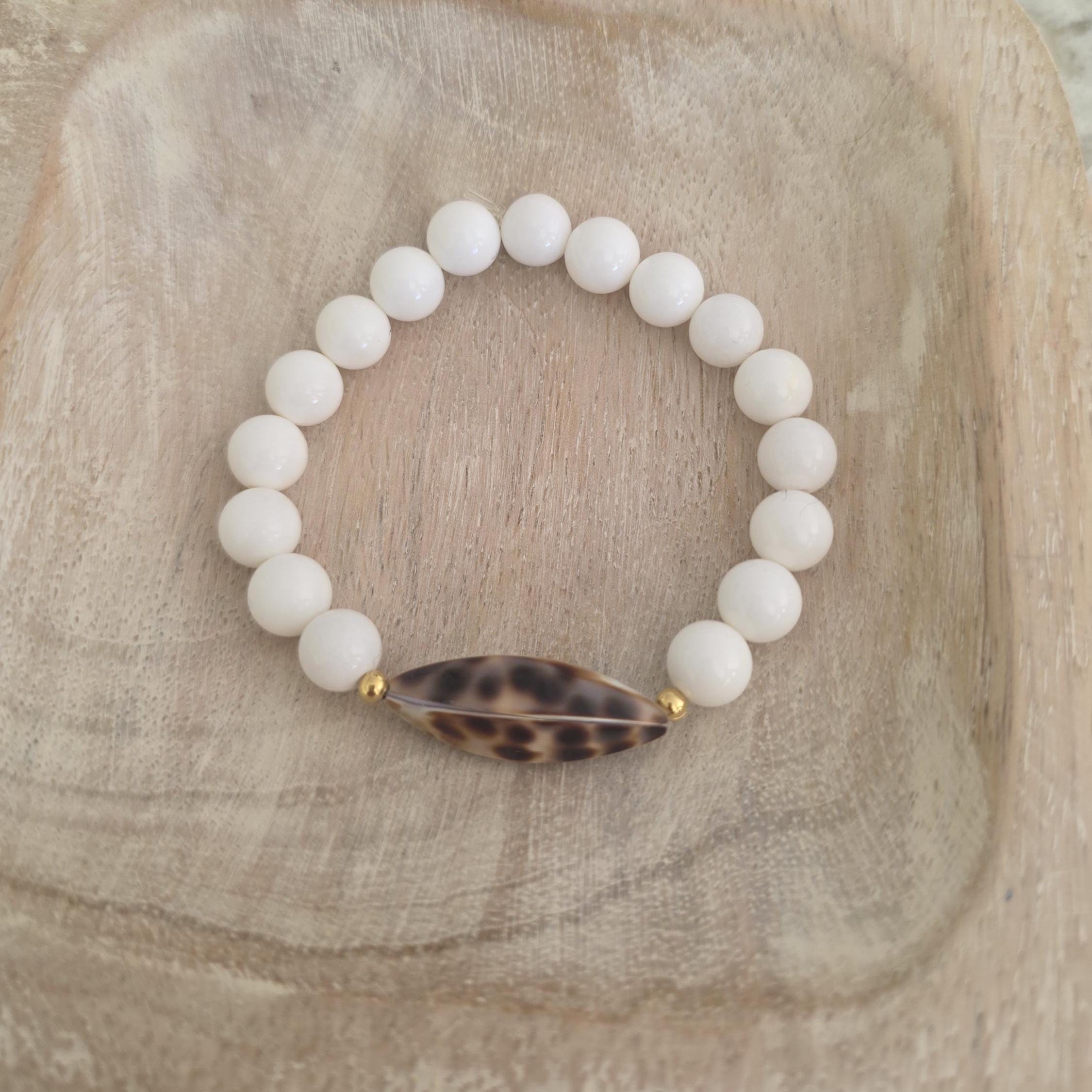 White shell beads with cowry shell bead, summer bracelet, boho jewelry