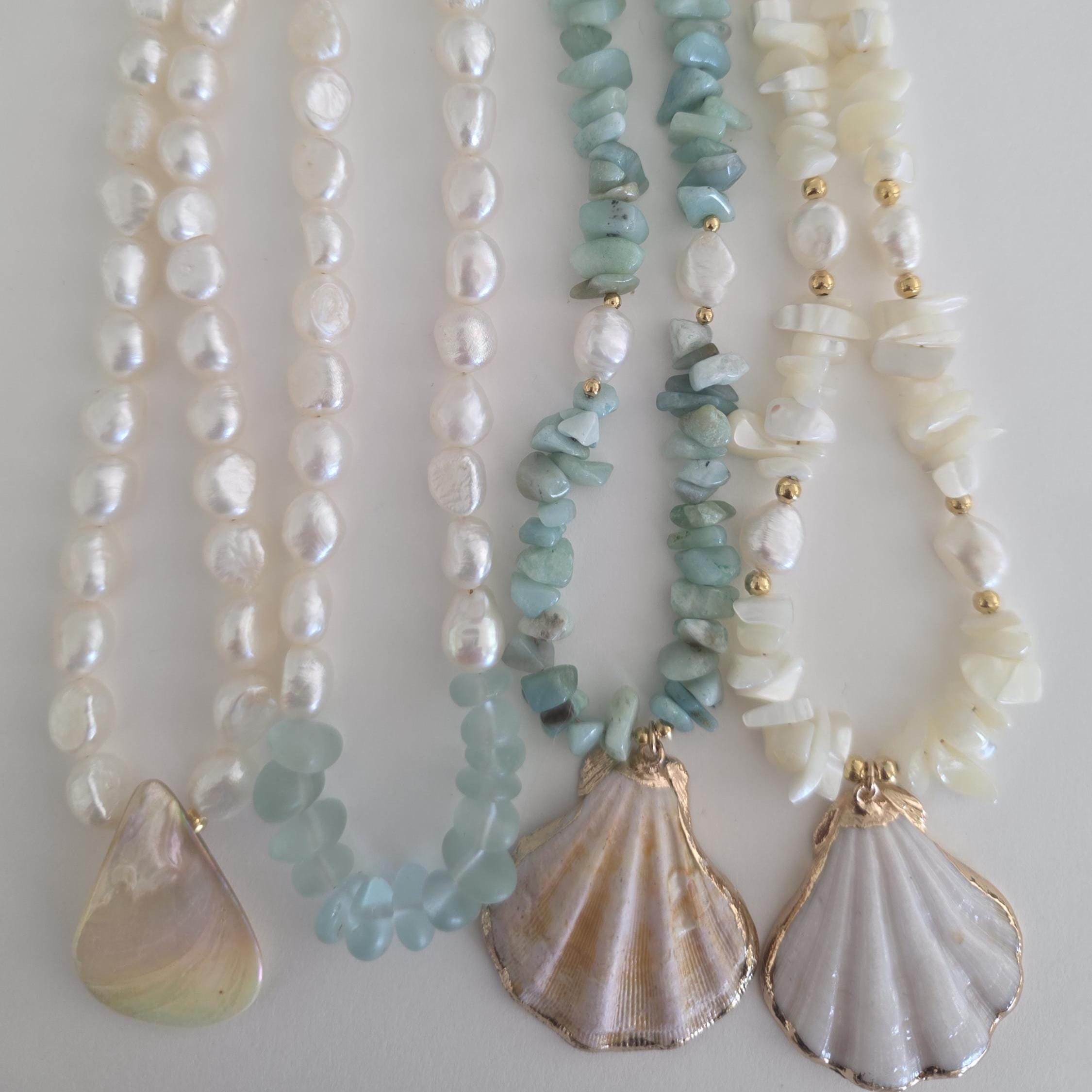 Listing is for the mother of pearl nugget necklace only. The others shown can be found in my shop.